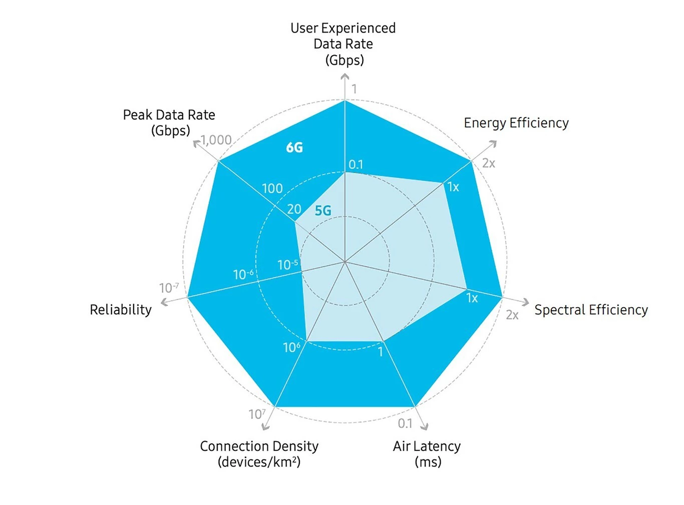 In a document published in 2020, Samsung also advanced that, with 6G, download and upload speeds will multiply, reaching peaks of up to 1,000 Gbps. This will support future multimedia formats and facilitate the exchange of data without noticeable delays in reception.